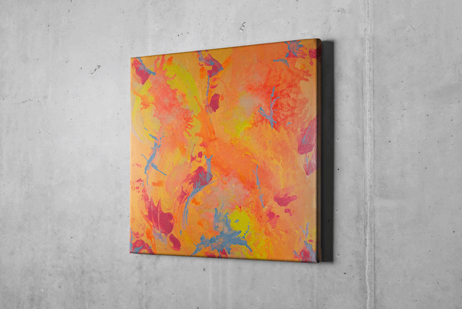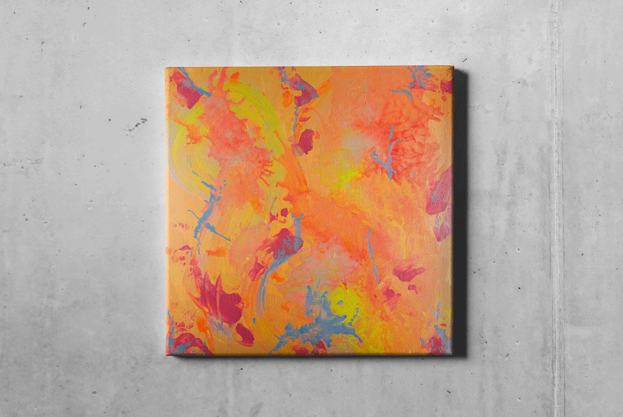 Das Bild ist entstanden bei dem Gedanken an einen Pfirsich. Süß und reif. Die Farben sind hell und froh, ein Gemisch aus gelb, orange und pink. Mal kräftiger und mal sanfter aber vor allem mit Lust auf Sommer.